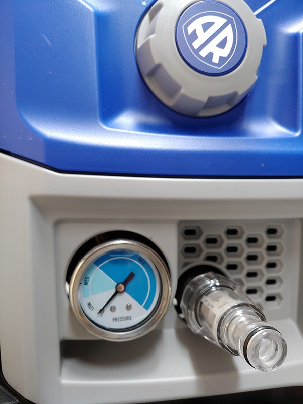 Robusta y duradera, equipada con REGULACIÓN DE PRESIÓN para ajustar la presión, manómetro, carrete de manguera a presión y depósito de detergente incorporado.