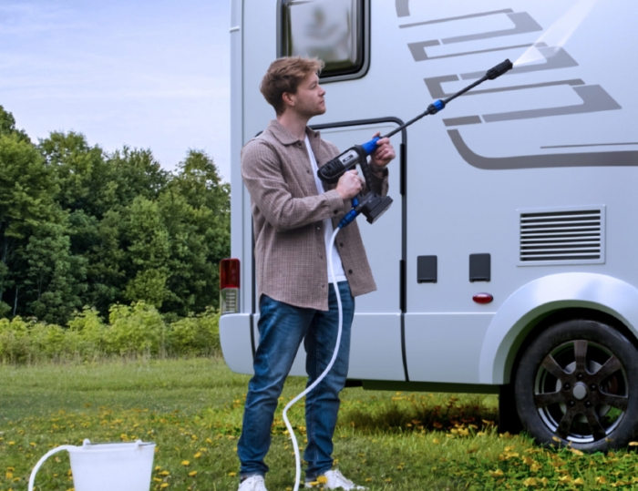 BC250 DSS es la hidrolimpiadora portátil a batería, práctica, ligera e independiente de la red de agua y electricidad.