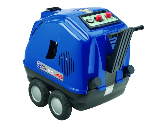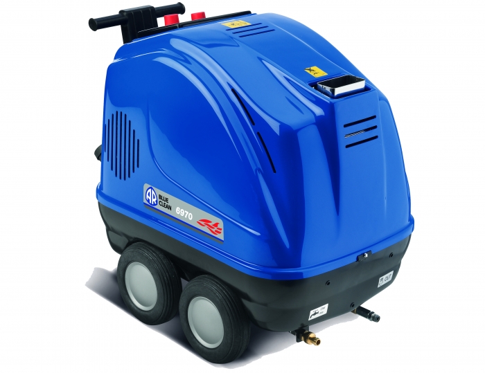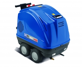 Bomba de tres pistones de cerámica y sistema de cigüeñal-biela. Válvula automática de by-pass con descarga de presión del cabezal de la bomba. Motor trifásico de alto rendimiento con protección térmica. Control remoto para apagado total de la hidrolimpiadora de alta presión. Con interruptor de presión de seguridad para apagar la caldera en caso de falta de agua. Caldera vertical de acero inoxidable con función de enfriamiento del quemador en espiral alimentado por un motor independiente, doble espiral y fondo de cemento refractario. Circuito de retardo para apagado de la caldera. Regulador de presión incorporado. Depósito de combustible con tapón de drenaje (14 l)