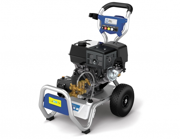 Hidrolimpiadora de alta presión de agua fria. 3400 rpm. Motor GASOLINA Loncin, Bomba de laton, sistema cigüeñal, manguera de alta presion de 10 mts. Valvula automatica de Bypass. 4 boquillas de distinto de angulo.